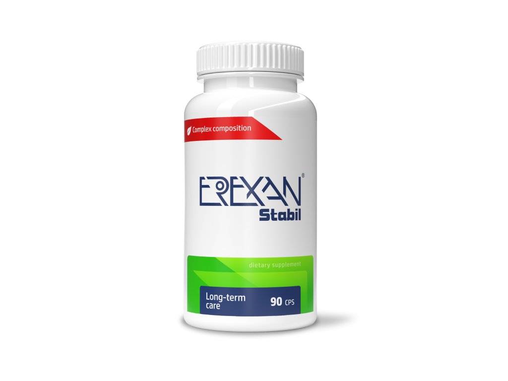 EREXAN Stabil je doplněk stravy vyvinutý speciálně pro dlouhodobou péči o plodnost a normální funkci reprodukčního systému mužů. Obsahuje široký komplex účinných rostlinných extraktů, vitamínů a minerálů podporujících tvorbu testosteronu, který je esencí mužnosti.
