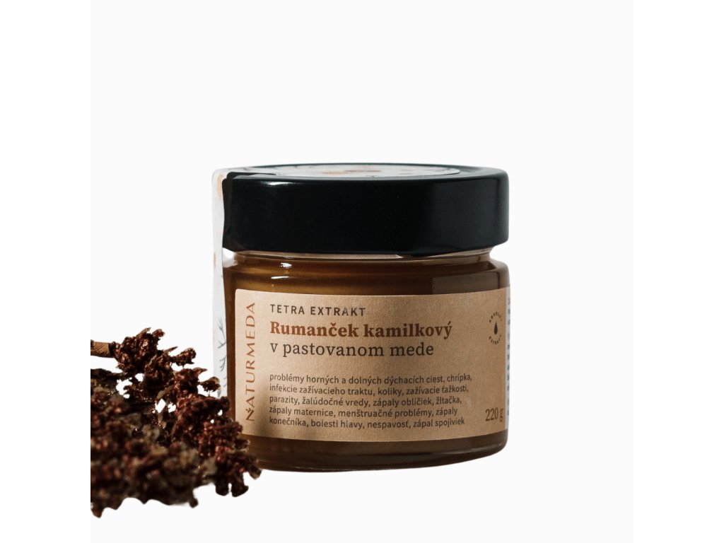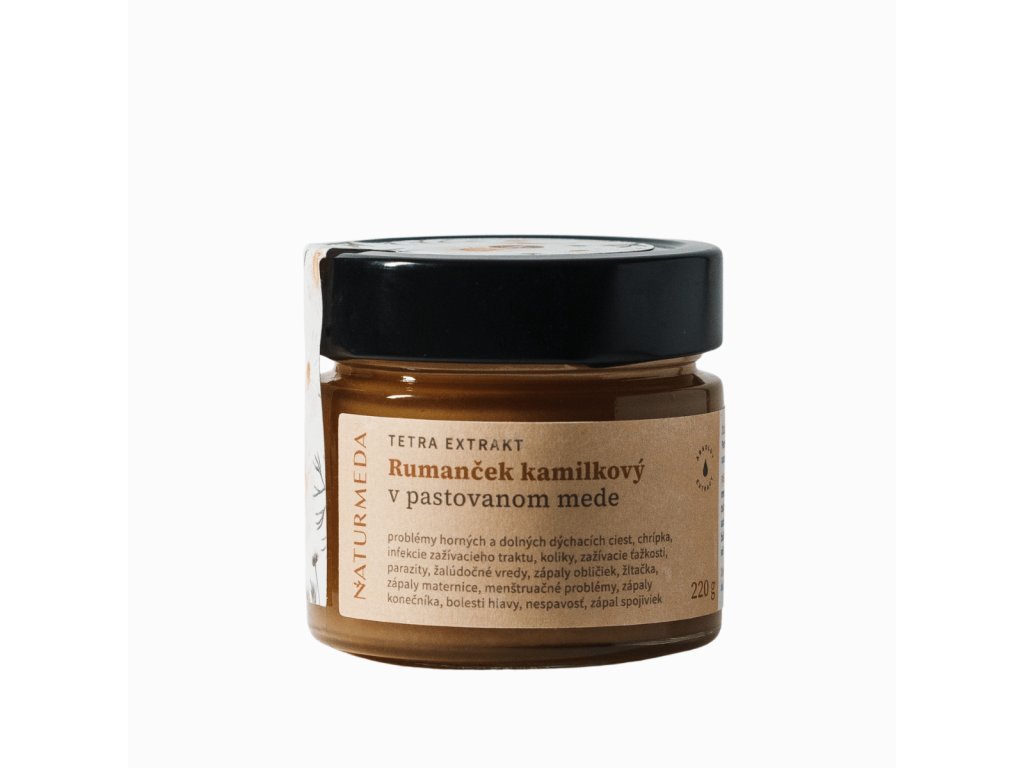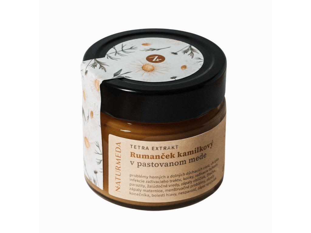 Včelí med sám o sobě je ceněn pro své antibakteriální účinky, podporu imunity a energetickou hodnotu. Když ho však spojíme s tetra extraktem heřmánku pravého, vzniká exkluzivní kombinace, která dokáže mnohem víc. Heřmánkový extrakt obohacuje med o protizánětlivé, zklidňující a trávení podporující účinky, čímž se z obyčejného medu stává terapeutický pomocník pro vaše zdraví.