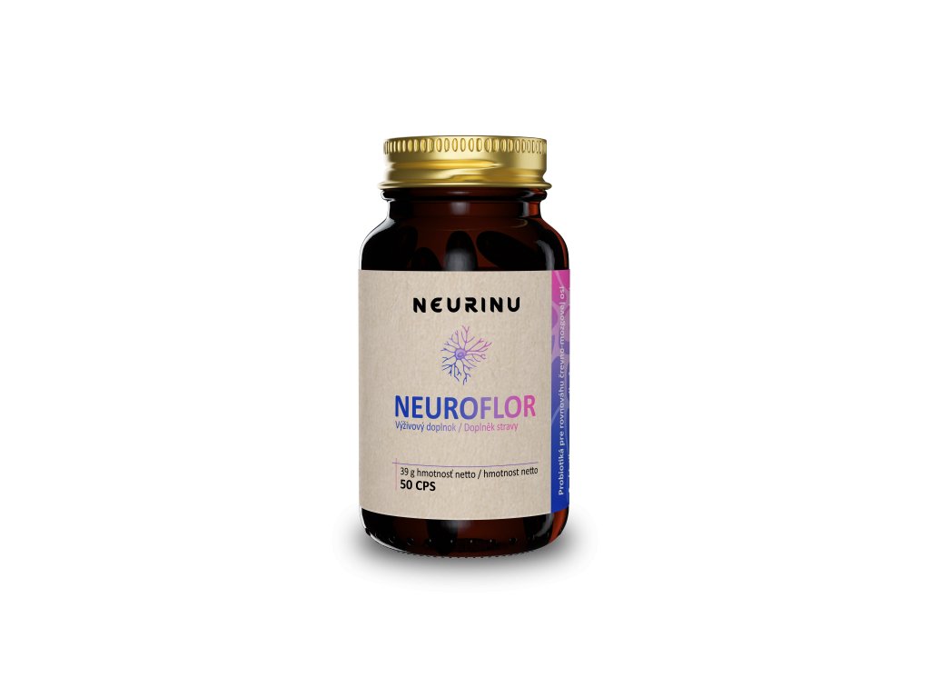 NEURINU Neuroflor™ je doplněk stravy obsahující speciálně vybrané probiotické kmeny a prebiotika, které podporují psychickou pohodu prostřednictvím tzv. střevně-mozkové osy. Tento mechanismus propojuje trávicí trakt a centrální nervovou soustavu a ovlivňuje tvorbu neurotransmiterů, jako je serotonin. Neuroflor™ obsahuje až 45 miliard živých bakterií v denní dávce, které pomáhají optimalizovat složení střevní mikroflóry a tím podporují lepší náladu, klid a odolnost vůči stresu. Účinek podporují speciální prebiotické látky, které vytvářejí ideální prostředí pro množení probiotických buněk. Pro zachování životaschopnosti probiotik byly použity hydrofobní patentované prebiotické přísady, které chrání živé buňky v kapsli. Výživový doplněk je vhodný i pro vegany a neobsahuje žádné zbytečné chemické látky, barviva ani živočišné složky.